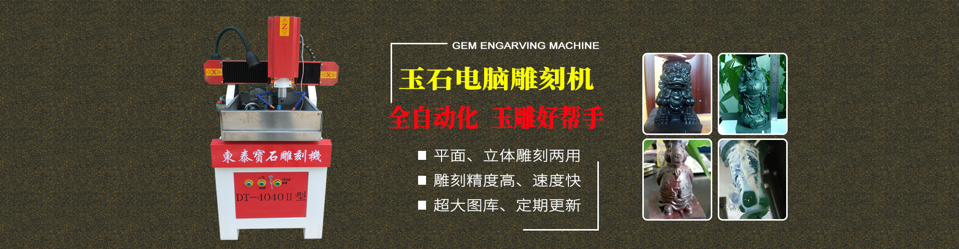 東泰生產(chǎn)出的寶石機械設備可用于加工晶體雜石、瑪瑙玉石、人造石、其他石類及貝殼、骨頭化石等等,加工出的產(chǎn)品孔位精確、損耗小、速度快、效率高;雕刻品細致、精美,大大降低了成本,提高了效率,深受寶石行業(yè)商家的歡迎。